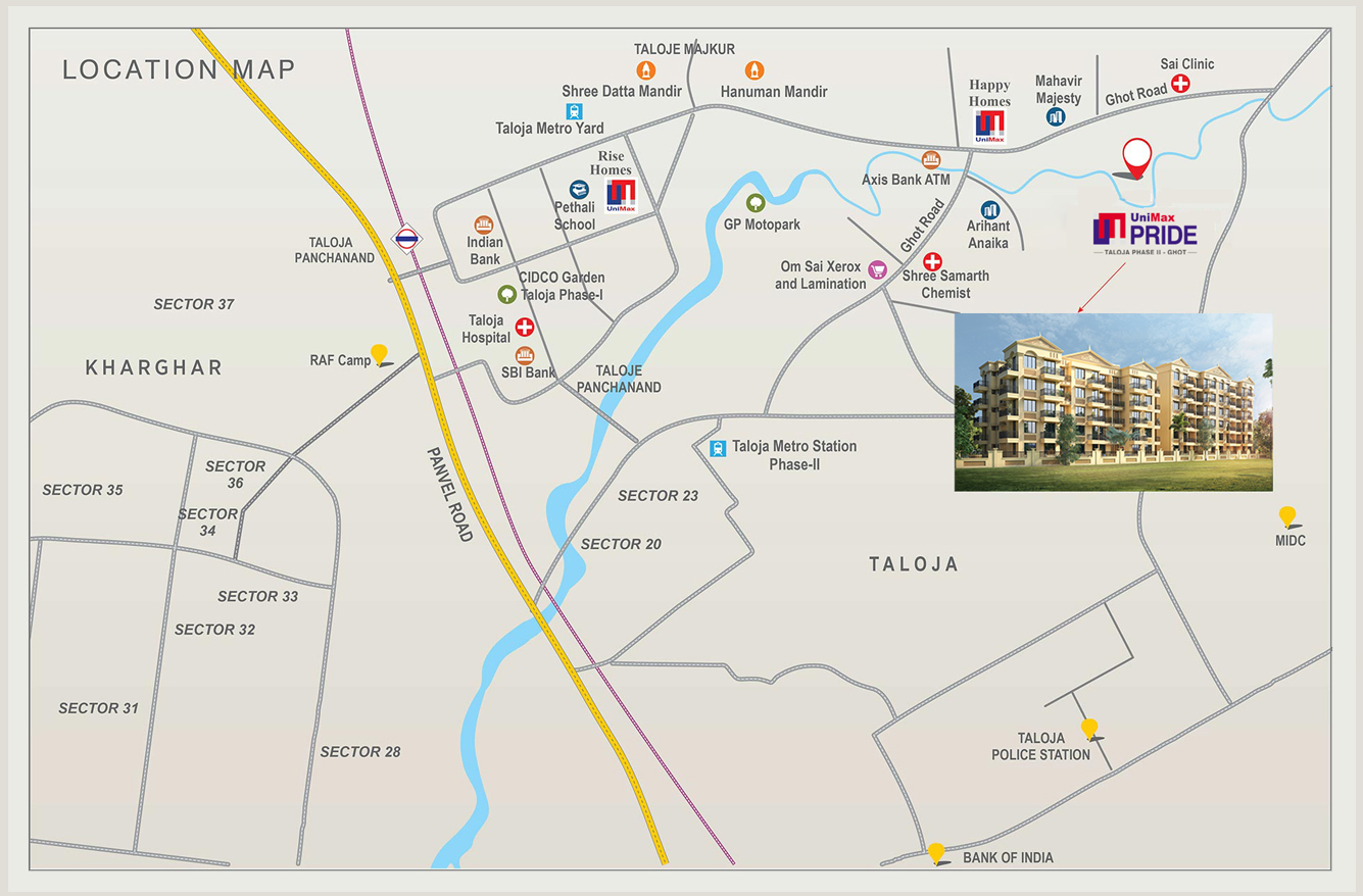 • Conveniently located at Taloja-Phase 2 - Ghot, Close to Kharghar